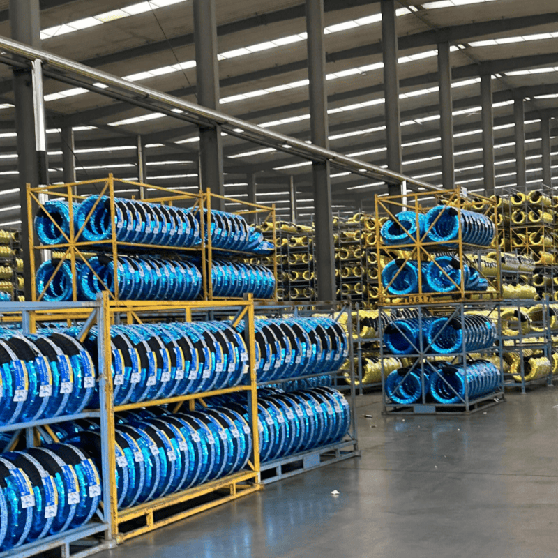 Given the diverse sizes of motorcycle tires, take a standard 14-inch tire as an example. Spray-coating one 14-inch tire takes about 16 seconds. Each machine has one glue-spraying station and 11 rolling curing stations, enabling one tire to start production as another finishes. On average, 160 motorcycle tires can be processed per hour, though actual figures may vary.